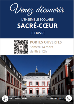 Portes ouvertes de l’Ensemble Scolaire Sacré-Cœur – Samedi 15 mars 2025 L’Ensemble Scolaire Sacré-Cœur a le plaisir d’ouvrir ses portes aux familles le samedi 15 mars 2025, de 9h à 12h, au 253 Rue Aristide Briand, 76600 Le Havre. Une matinée pour découvrir notre établissement Que vous soyez parent ou futur élève, cette matinée sera […]