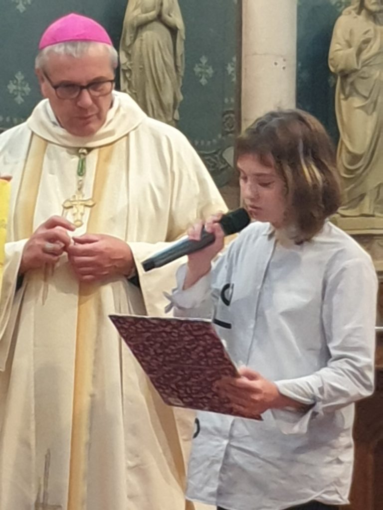 A la fin de la messe, Monseigneur Brunin a remis sa lettre de mission à Mme Renard-Nugue qui devient ainsi officiellement notre nouvelle directrice.