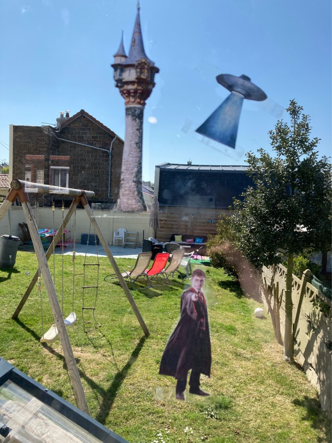 Les élèves devaient installer un ou plusieurs collage(s) sur leur fenêtre afin de l'(les) intégrer au paysage extérieur. Ils ont finalisé leur projet par une photographie.